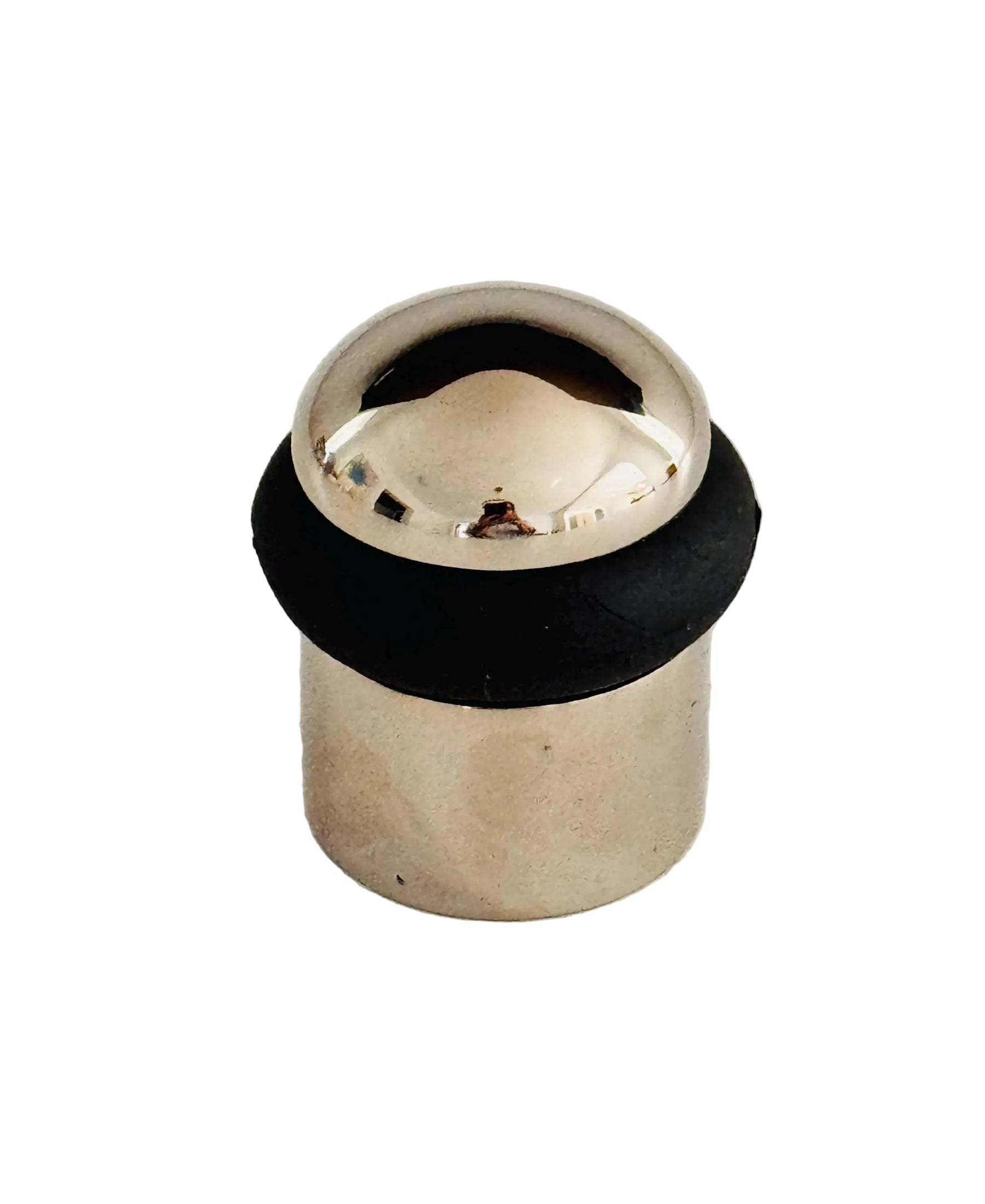 Our smooth and simple door stop is a popular addition to any décor. Made of solid brass, with a durable black bumper with polished nickel finish.