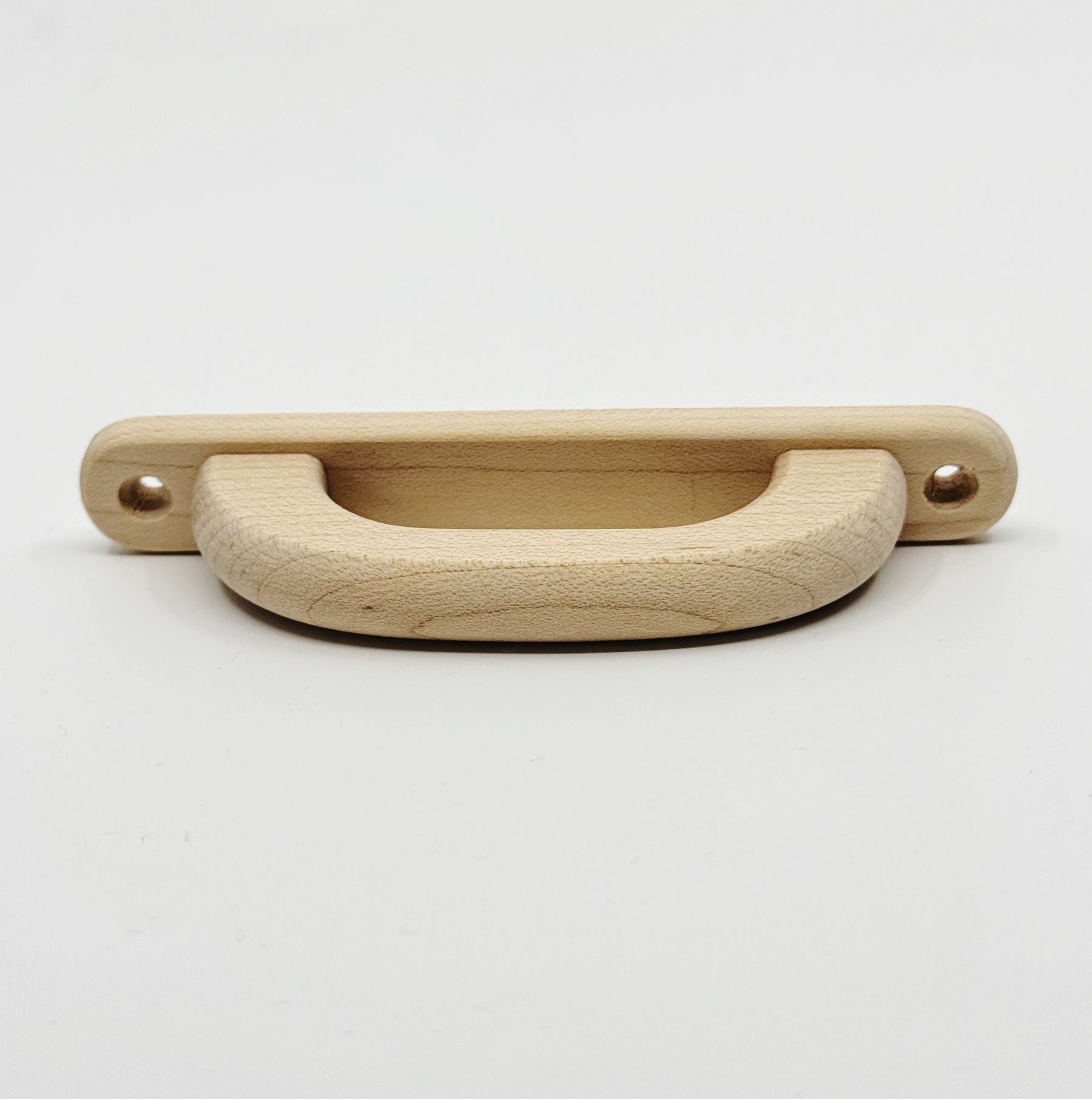 These unfinished wooden pulls are beautiful and great for kitchen bathroom cabinetry or for crafts. The Maple Symmetrical recess pulls useful for both horizontal and vertical mounting, Required recess depth is min. 9/16"; the lip sits 3/16" proud. Sanded smooth and ready for finishing.
